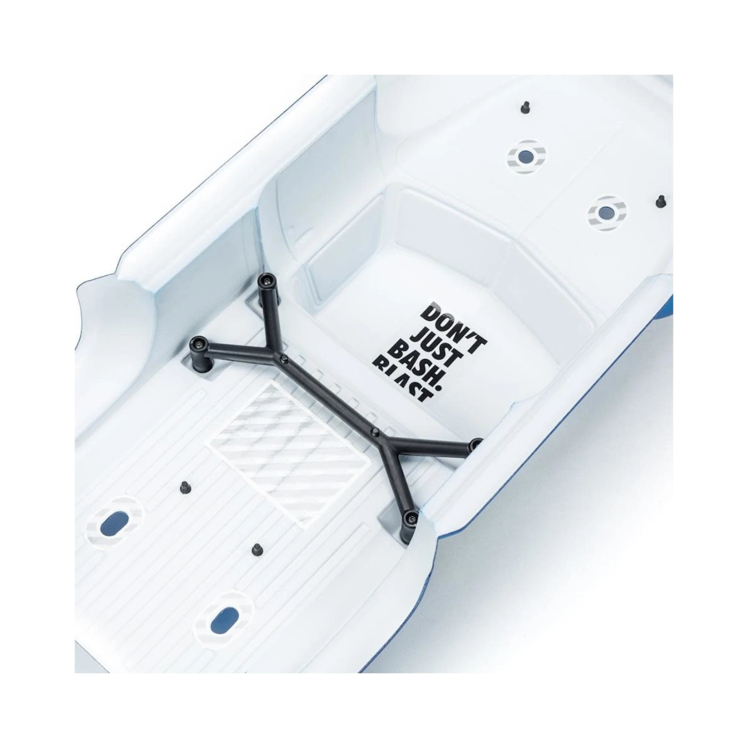The Arrma Notorious 6S BLX Brushless RTR 1/8 Monster Stunt Truck V5 unleashes outrageous wheelie-popping, back-flipping action. 1950s styling with a matte black or matte blue factory finish offers streamlined good looks, while the exclusive ARRMA “Real Steel” effect adds eye-catching realism that only improves with severe bashing. The more scratched and scarred the body becomes, the more amazing it looks.