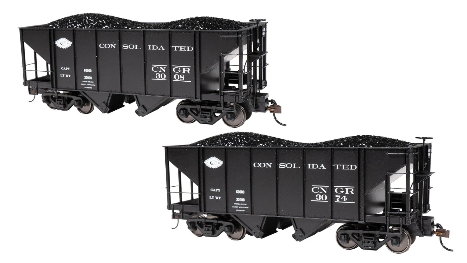 Based on hoppers built by the East Broad Top Railroad in their Orbisonia, Pennsylvania shops, the 2-Bay Steel Hopper is similar to narrow gauge hoppers found across the United States in the early-to-mid 20th century, many of which were purchased from the East Broad Top or based on their design. The Bachmann model features a removable coal load, separately-applied brake wheel and cylinder, and fine-scale grab irons. Two models per box.