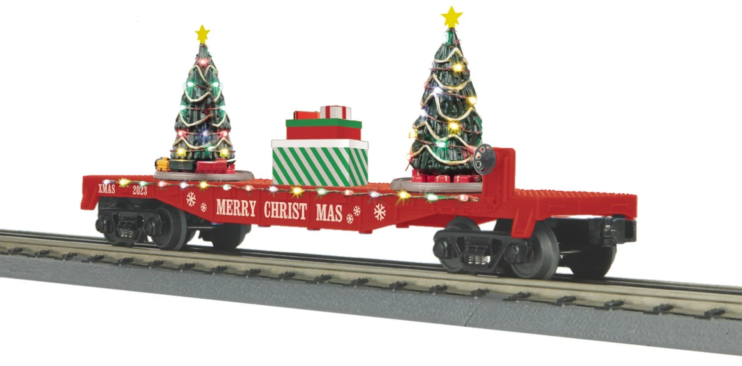 MTH 30-76865 O Flat Car W/Lighted Christmas Trees – Christmas (Red) Car No. 2023